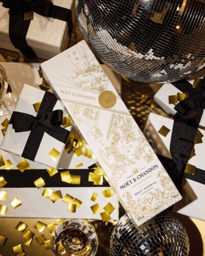 ¿Qué? Decoración, diseño y producción de materiales para la campaña navideña de Moët y Chandon.
