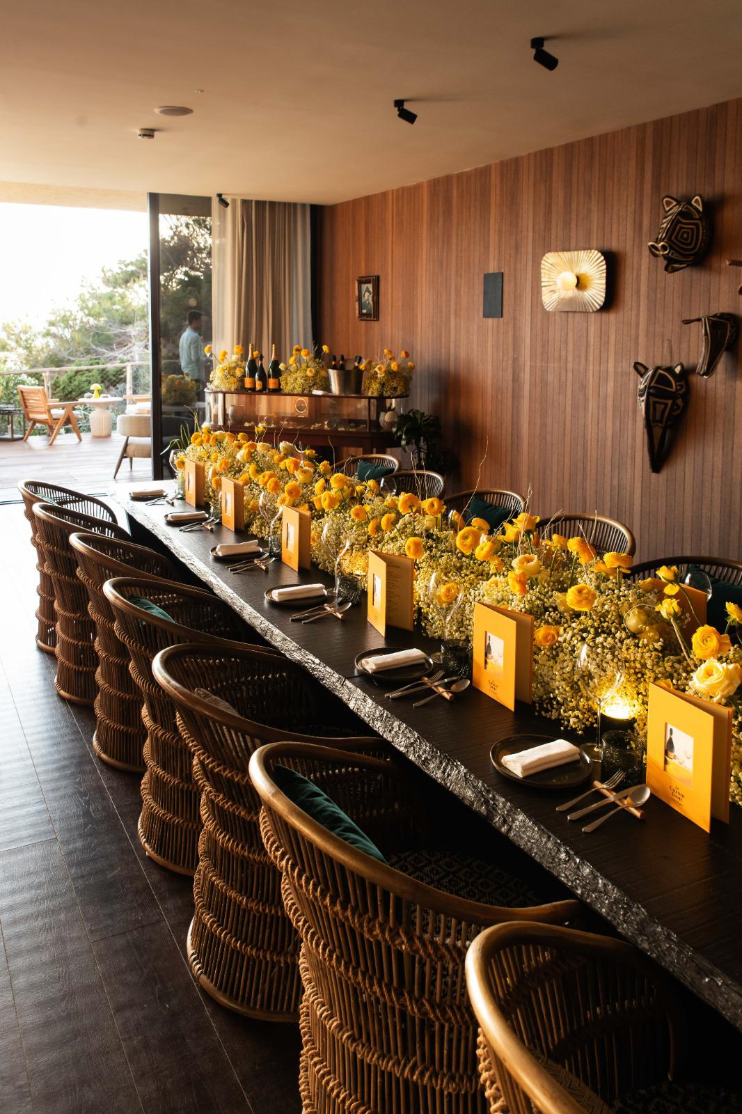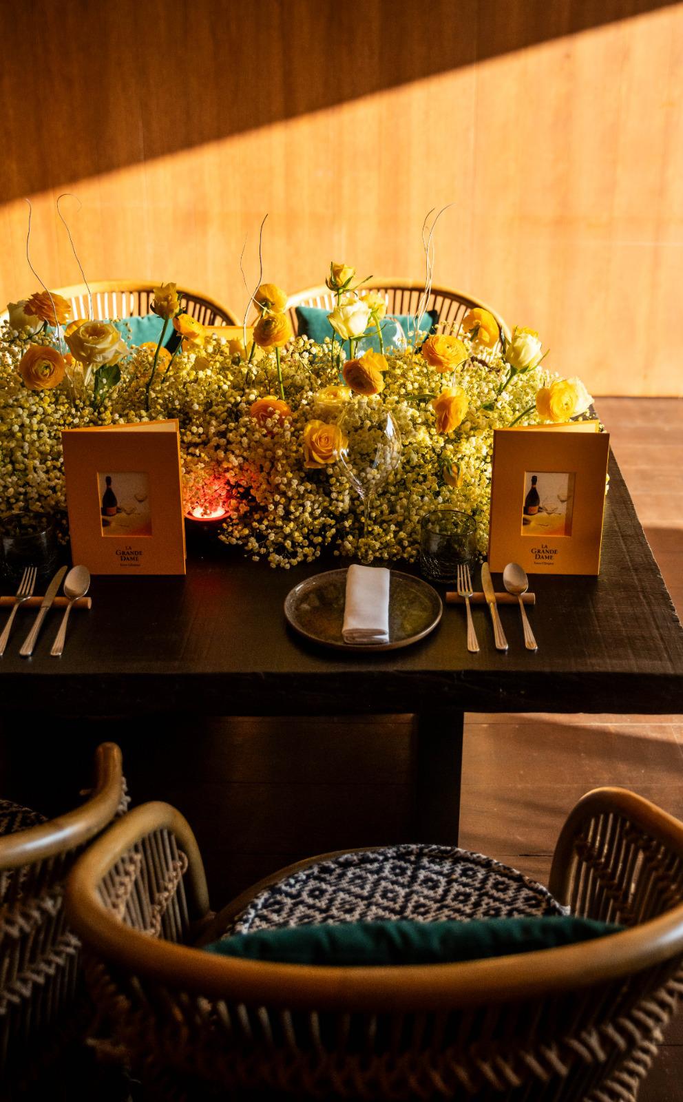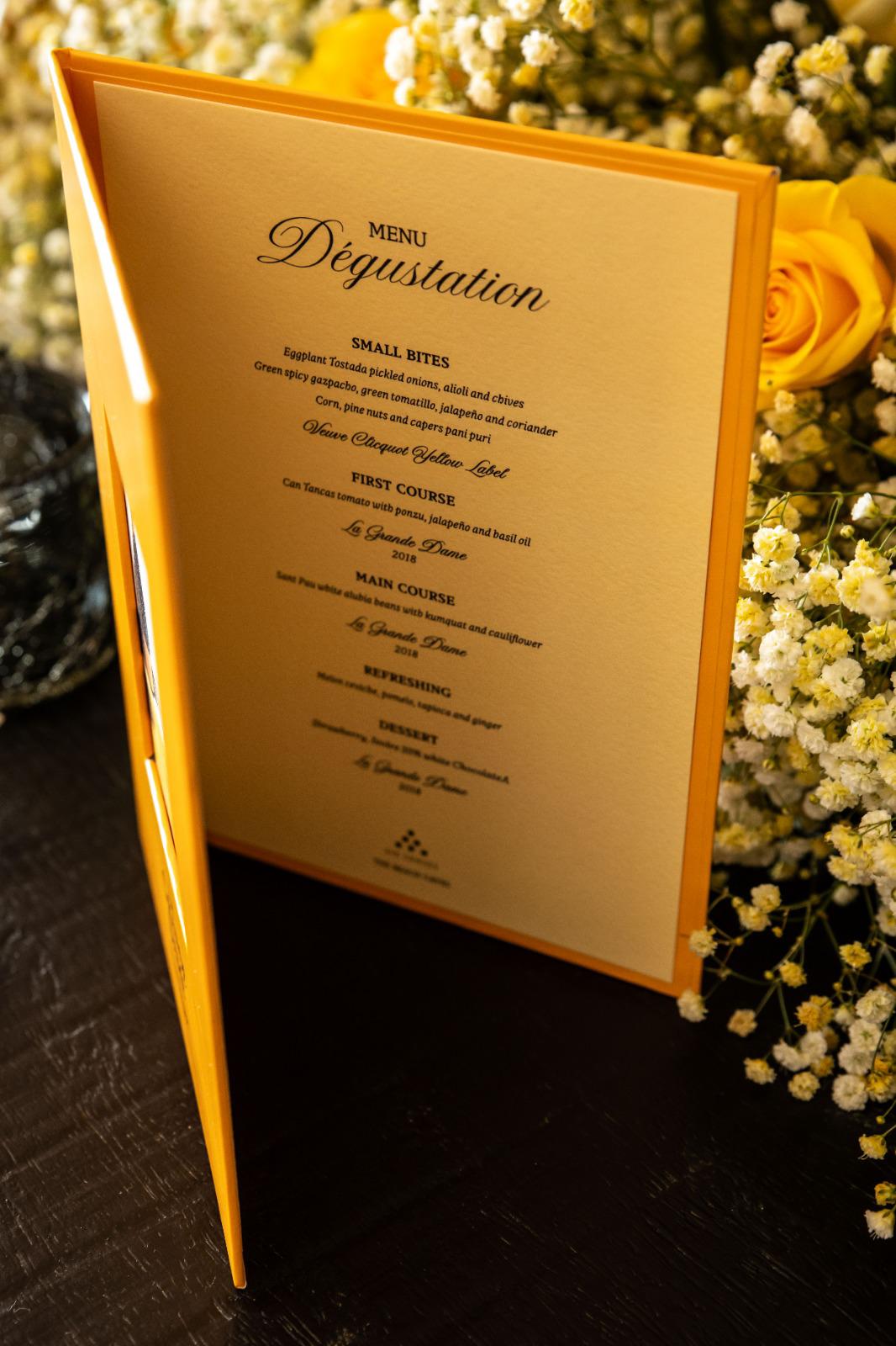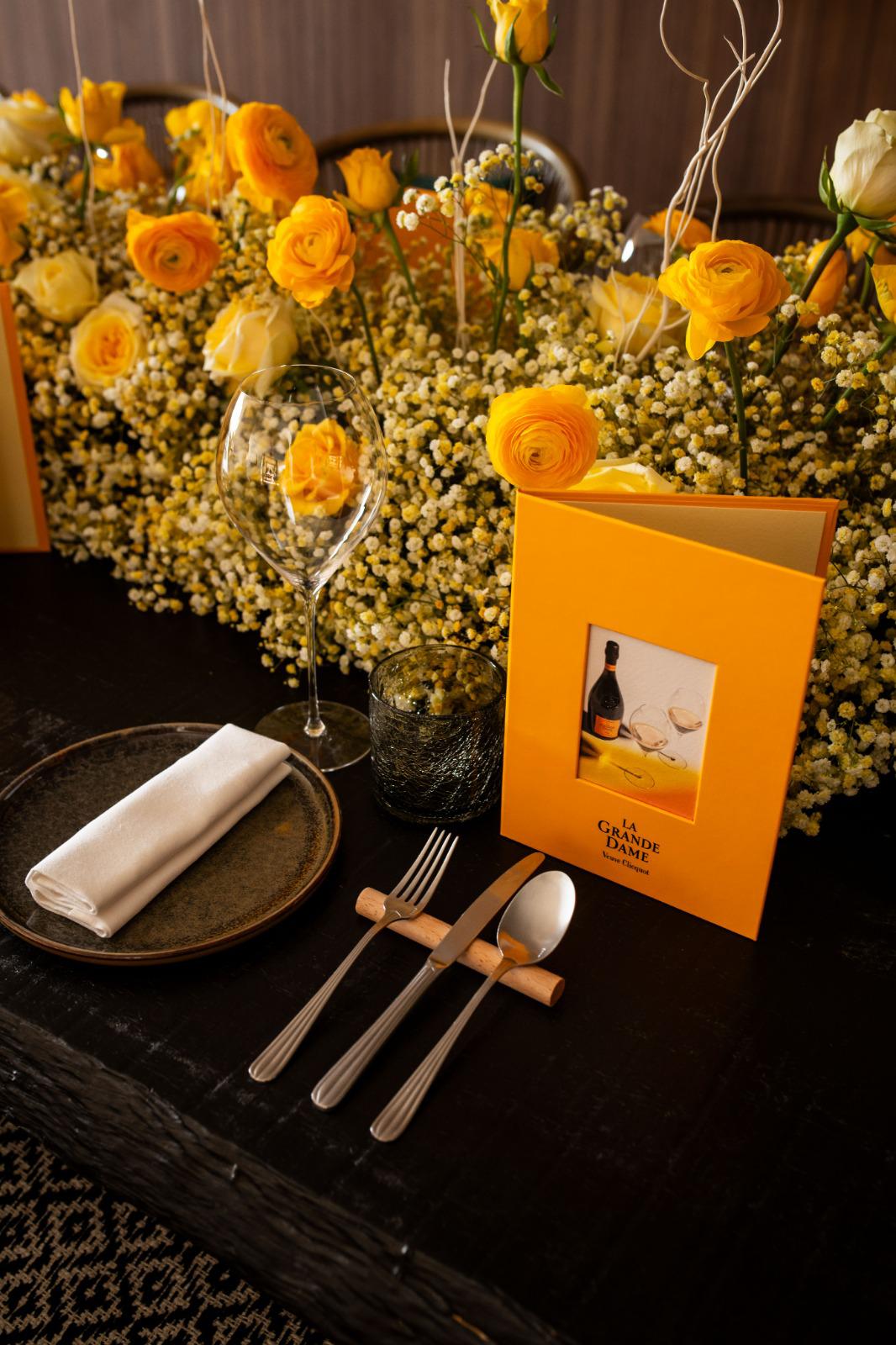 ¿Cómo? La Grande Dame es un homenaje a la inspiradora Madame Clicquot, el mismo que logramos al dar vida al producto gracias a los arreglos florales que engaman no solo con el amarillo Clicquot sino también con la esencia de la marca. Adaptamos, producimos los menús y diferentes modelos de posavasos de tela que acompañaban la ocasión. El evento fue categorizado como «Best Practice» dentro de la marca.