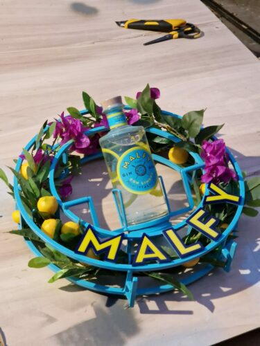 ¿Cómo? Diseñando una pieza única inspirada en costa Amalfinata y el brandbook de Malfy Gin que reflejara el espíritu de la marca y no dejara a nadie indiferente. Esta pieza puede servir tanto de expositor como de dosificador giratorio gracias al movimiento giratorio lo que añade un plus al servicio.